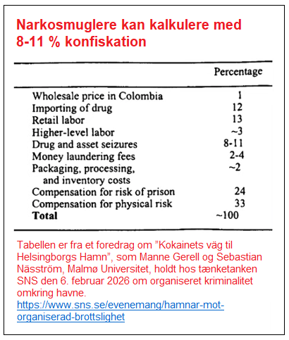– Mere og mere narkotikaindsmugling bliver forsøgt via de skandinaviske havneanløb. For et halvt år siden var jeg ude med kommunikation om, at konfiskationer var steget betragteligt. Det er noget, vi er meget opmærksomme på, og som den nationale enhed for særlig kriminalitet (NSK) bruger mange kræfter på, siger Peter Hummelgaard Thomsen med baggrund i NSKs analyser og efterretningsvurderinger.