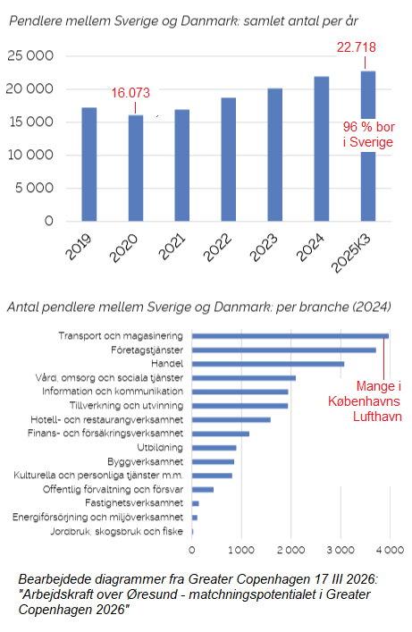Antallet af pendlere slog trods alt rekord i efteråret 2025 med 22.718 personer, hvoraf 96 % bor i Sverige, men det er ikke nok til at mætte det storkøbenhavnske arbejdsmarked.